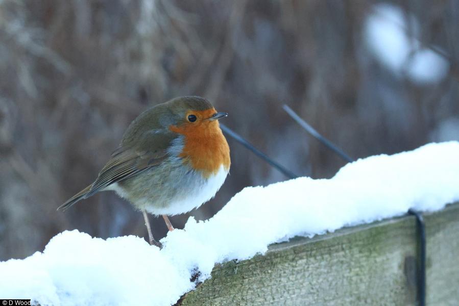 Kestrel - 2 ; Green Woodpecker - 1 - yaffling in top plantation ; Crossbill - 4 - in plantation W of res ; 320 - 8 - on half-frozen res ; Herring Gull - 10 - on ice ; Canada Goose - 37 - on half-frozen res ; Mallard - 22 - on half-frozen res ; Robin - 4 - generally very confiding in the snow