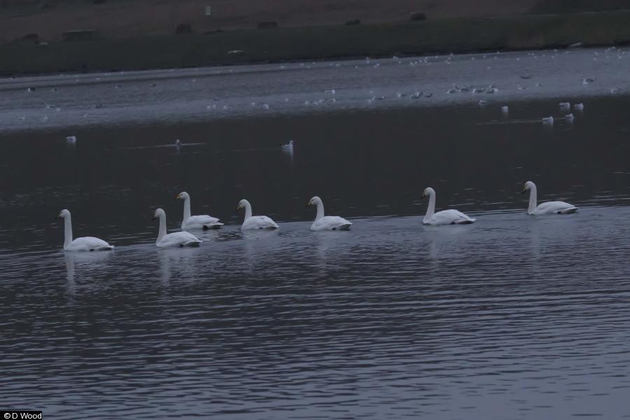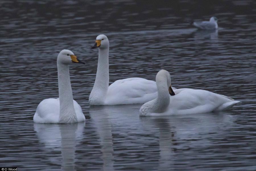 - 1 - first-winter with LBBs - off south late afternoon ; Black-headed Gull - 4 - roosted ; Common Gull - 88 - roosted - many off south at dusk ; Starling - 52000 - c. roosted on No.3 lagoon - most birds came in form the south - counted as they flew past the hide on No. 4 lagoon - spectacular sight but little in the way of a murmuration