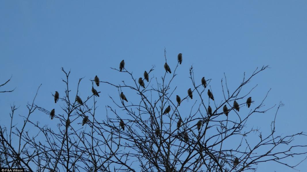 - 30+ ; Long-tailed Tit - 6+ ; Greenfinch - 2+ - wheezing from tree and hedge top ; Great Tit - 1+ ; Robin - 3+ - two singing ; Blackbird - 5+ - all males
