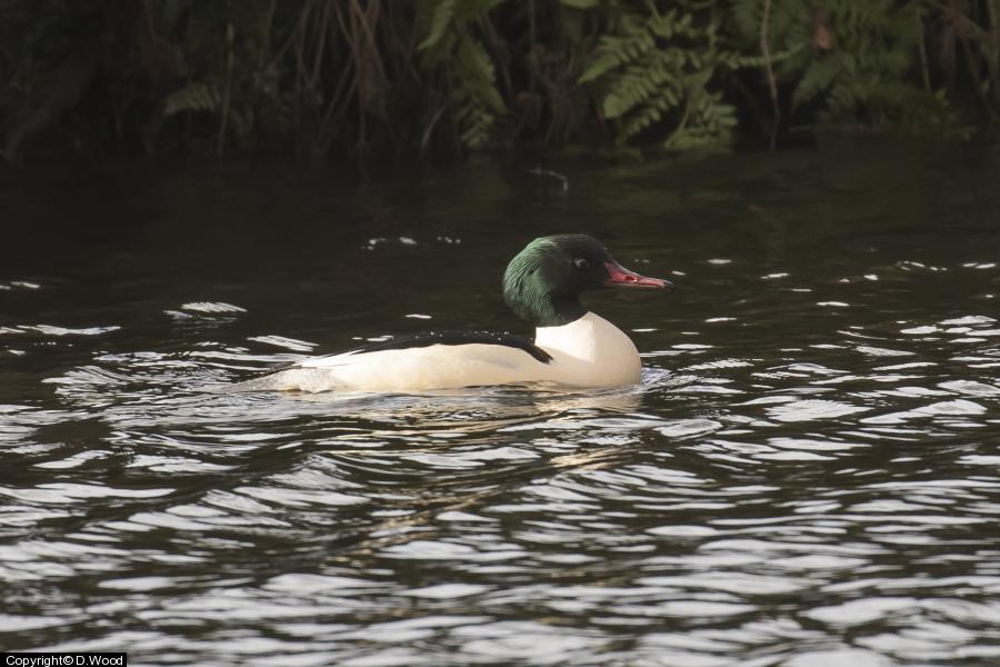Goosander - 1 - male flushed by dogs ; Goosander - 1 - another photo ; Siskin - 6 ; Nuthatch - 3 - including one visiting feeders