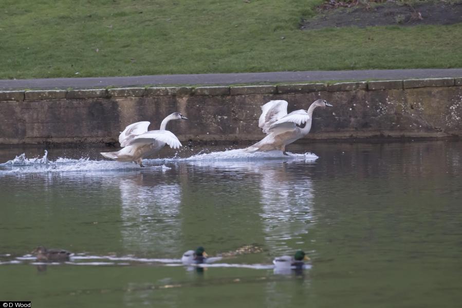 Song Thrush - 1 - singing ; Grey Wagtail - 1 - over ; Mute Swan - c90 - inc 6 2cy ; Tufted Duck - 1 - drake ; Herring Gull - c50 - attracted by swan 'feeding frenzy' ; Great Black-backed Gull - c15 ; Black-headed Gull - c200 ; Cormorant - 1 ; Mallard - c80 ;