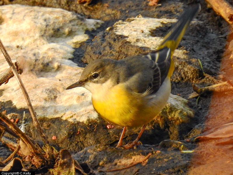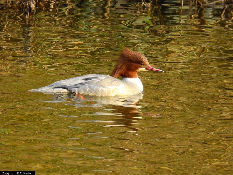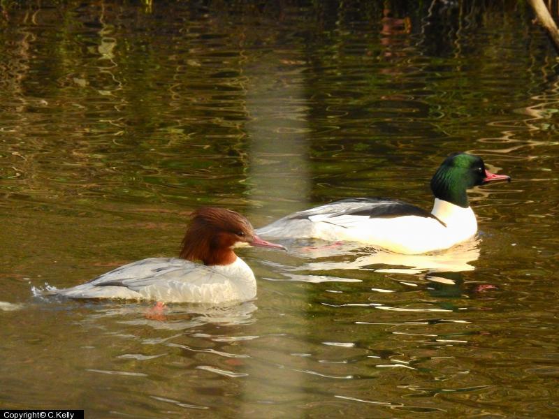 Grey Heron - 1 ; Goosander - 2 - Pair ; Goosander - 2 - Another image - redhead ; Grey Wagtail - 1 - Foraging on Norfolk Bridge Weir