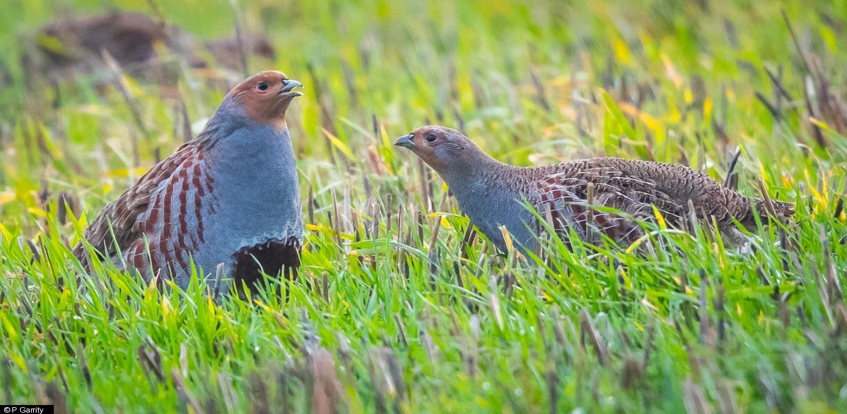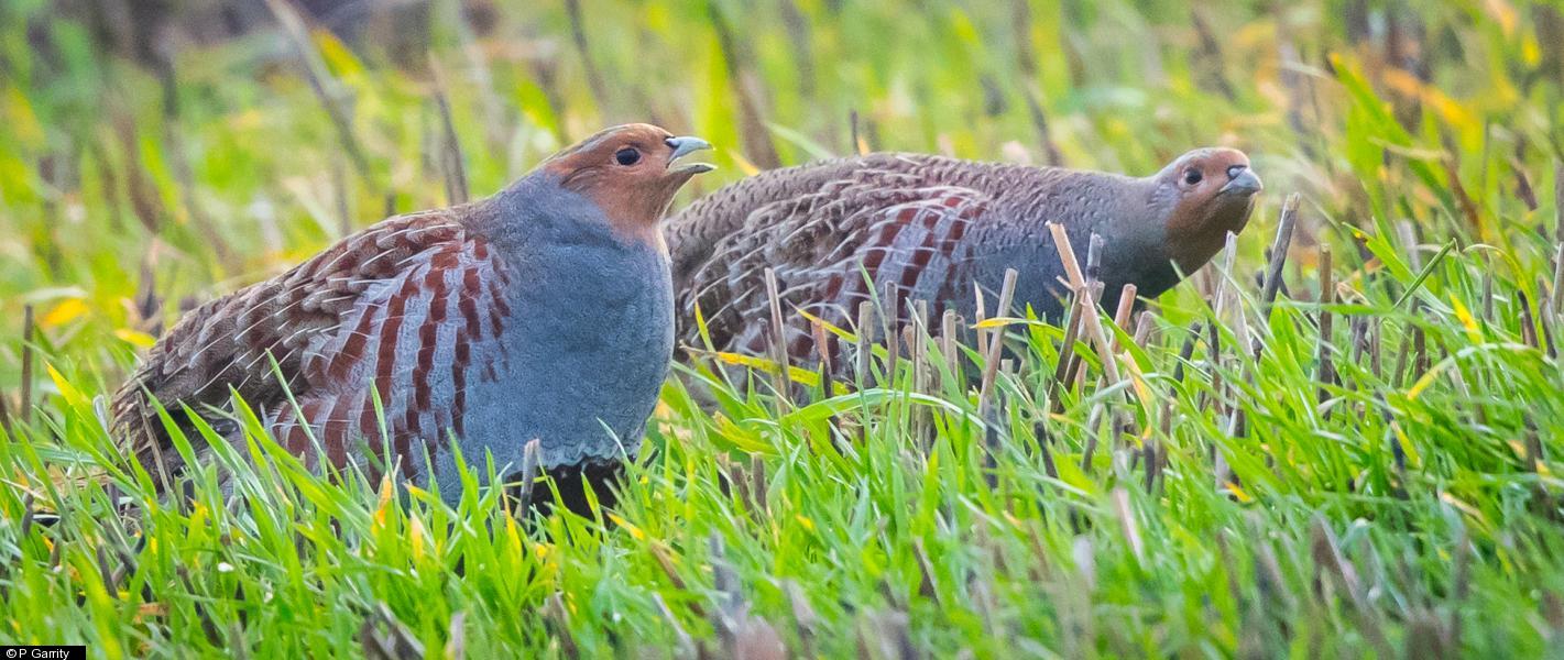 Grey Partridge - 10+ - At least 10 in a single covey feeding in field ; Grey Partridge - 10+ - photo ; Grey Partridge - 10+ - photo ; Grey Heron - 1 ; Greenfinch - 6 ; Tree Sparrow - 5+ ; Common Buzzard - 1