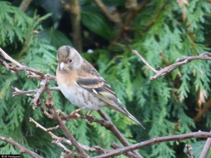 Blackbird - 4 ; Magpie - 2 ; Goldfinch - 15+ ; Great Tit - 2 ; House Sparrow - 20+ ; Dunnock - 2 ; Blue Tit - 4 ; Long-tailed Tit - 3 ; Robin - 1 ; Carrion Crow - 1 ; Woodpigeon - 1 ; Coal Tit - 1