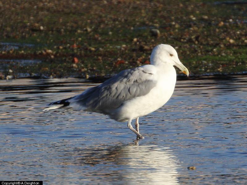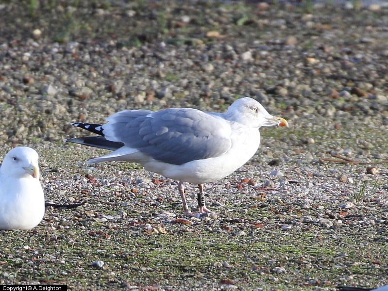 - 1 - adult, different bird to November, no black in P4 for a start. ; Great Black-backed Gull - c80 ; Herring Gull - c40 - including this bird ringed in a colony on Hørnoya Island, Vardo, Finnmark in 2010, and seen at his site in Jan 2018, and previously in Salop in 2012.