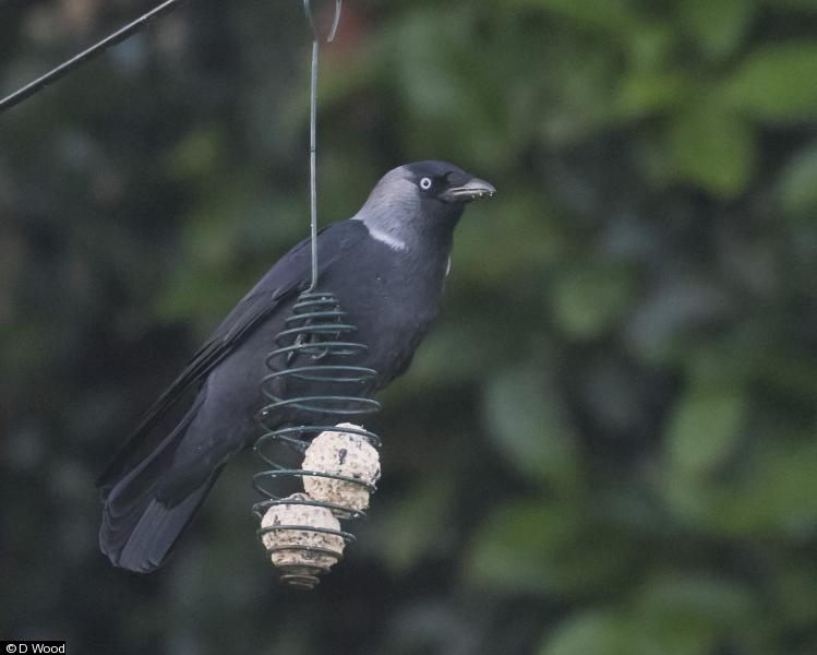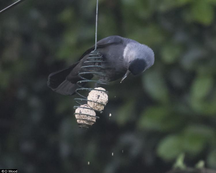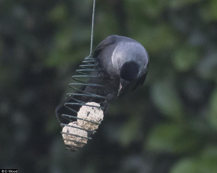Jackdaw - 2 - including one bird showing characteristics of 'Nordic' Jackdaw (monedula) - photo ; Jackdaw - 2 - another photo of the apparent 'Nordic' bird; only stayed briefly before leaving with Rooks ; Jackdaw - 2 - and a final photo of the 'Nordic' bird ;