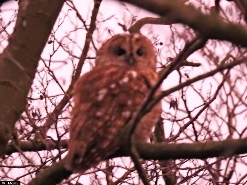 Tawny Owl - 2 - Pair close to each other and calling at 7.40 (record shot) ;