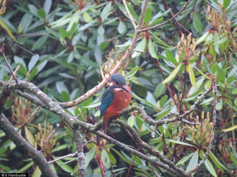 Mallard - 20+ - equal numbers of male and females ; Coot - 1 ; Robin - 1 - In woods below the dam ; Jay - 4 - In woods below dam ; Dipper - 1 - In stream below cottages near dam feeding