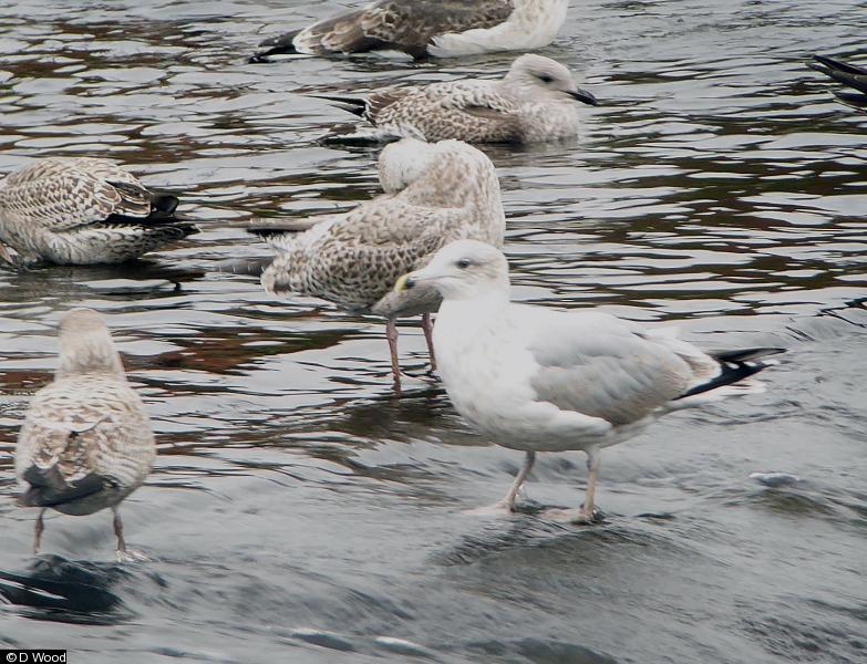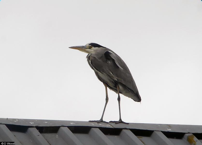 - 1 - third winter ; Goosander - 3 ; Grey Heron - 1 - adult on roof of Thomas Ward with gulls