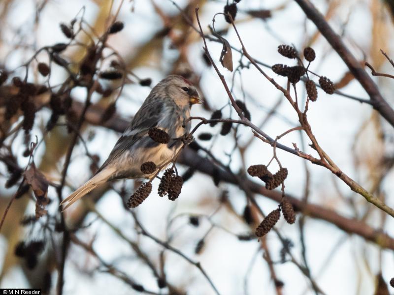 - 1 - Possible Coues among lesser redpolls, though identification not confirmed. Seen early morning though not subsequently. ;