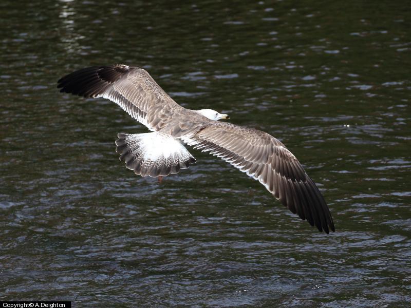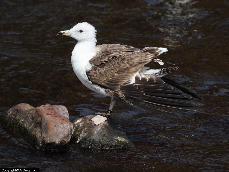 336 - 1 - Norway ringed nominate 'fuscus' LBBG again today, being last seen on 10th July here. ; 336 - 1 - another photo. Note the full complement of fresh looking primaries and secondaries in this 2cy bird. ; Kingfisher - 1 - flew downstream ;