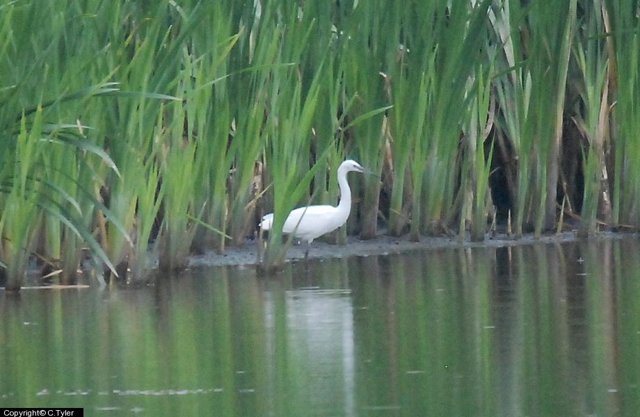 Little Egret - 1 - Feeding in shallows and on exposed mud at far end of main Res. ; Moorhen - 2 - Feeding on mud. ; Mallard - 6 - F with 5 well grown ducklings. ; Grey Heron - 2 ; Pied Wagtail - 1 ; Black-headed Gull - 2 ; 319 - 1 - On telegraph pole ; Kestrel - 1 ; Sedge Warbler - 2 - Singing from Reed beds at opposite ends of site. ; Yellowhammer - 2 - Singing. ; House Martin - 20+ - Mixed flock with Swallows overhead.
