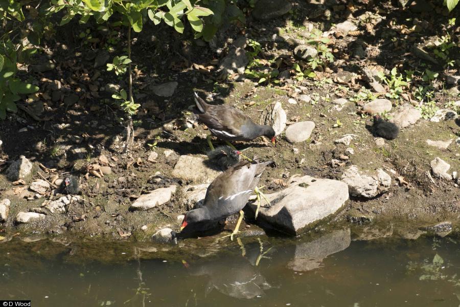Moorhen - 4+ - including pair with 3 small chicks ; Sand Martin - 8 ; Black-headed Gull - 75 - including several ginger juvs ;