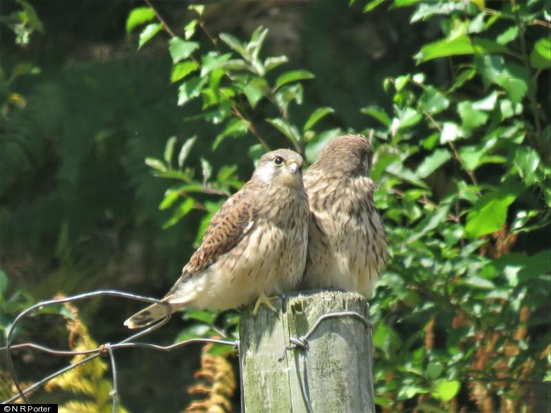 Kestrel - 4 - 4 newly fledged young on Tofts Lane near Oak Farm ; Kestrel - 4 - another photo