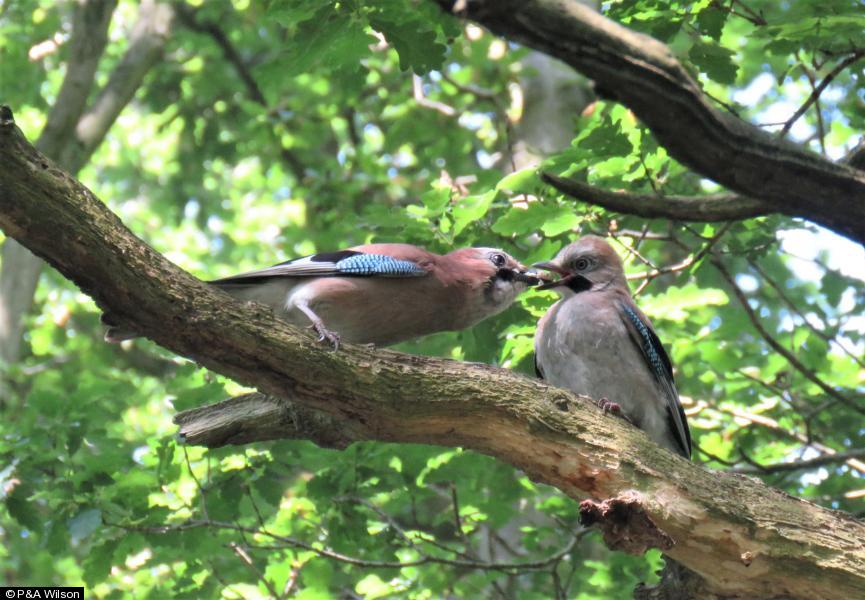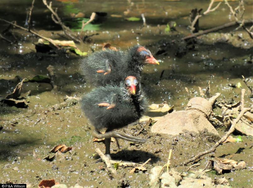 Moorhen - 5 - 2 adults & 3 chicks ; Jay - 4 - 2 adults feeding 2 juveniles ; Mallard - 3+ - 3 chicks