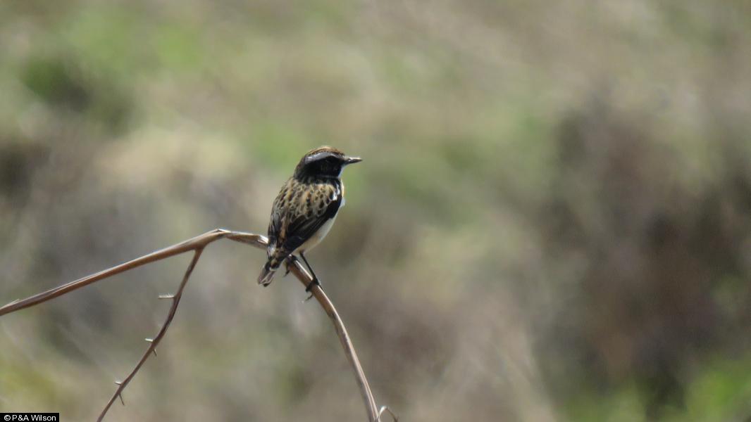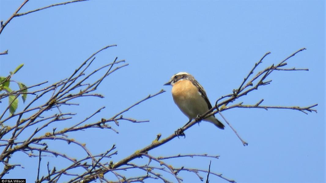 Lapwing - 3 ; Meadow Pipit - 6+ ; Swallow - 3 ; Reed Bunting - 1 - male ; 319 - 3 ; Kestrel - 1 ; Whinchat - 3 ; Whinchat - 3 ; Skylark - 3 ; Curlew - 1 - chasing a crow ; Ring Ouzel - 1