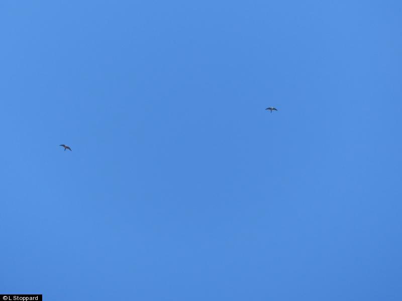 Kestrel - 1 - male over from adjacent nesting site ; Blackcap - 2 - inc one singing ; Mallard - 2 - drakes, SW ; Song Thrush - 1 - singing ; Mistle Thrush - 2 - presumably with nest/young nearby, chasing off marauding MGs ; Gadwall - 3 - 2m in pursuit of f over, before returning to Aldwarke SF ; Lapwing - 1 - S ; Lesser Black-backed Gull - 11 - W/SW ; Willow Warbler - 1 - singing ; Swift - 1 - drifted SW @ 0735hrs ; Long-tailed Tit - 6