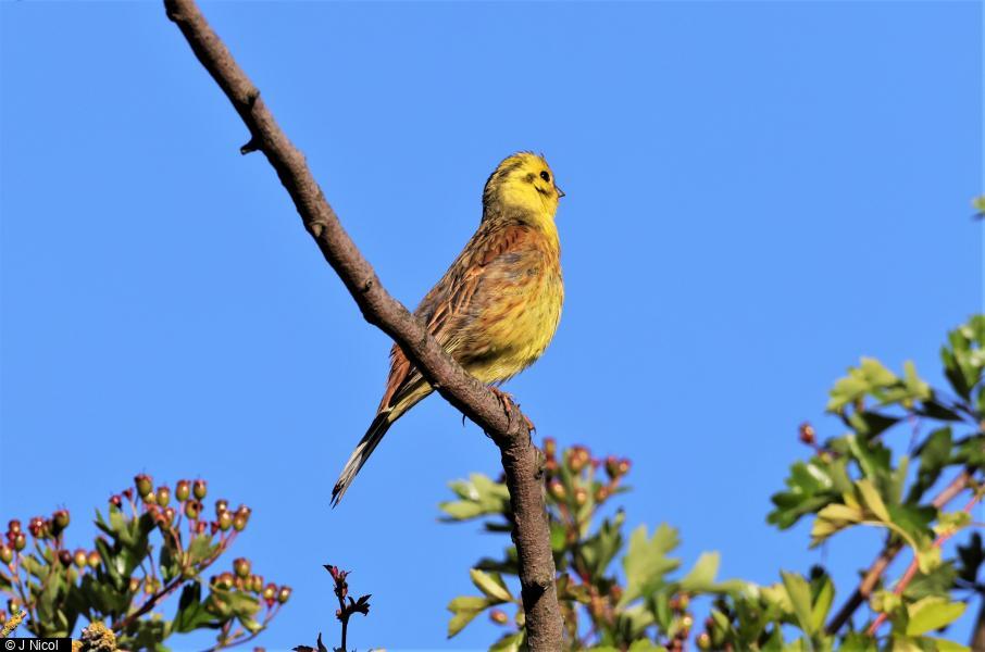Yellowhammer - 2+ - pair making regular trips to nest site . Presumed young.