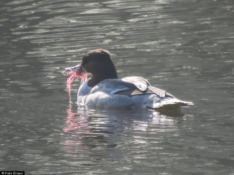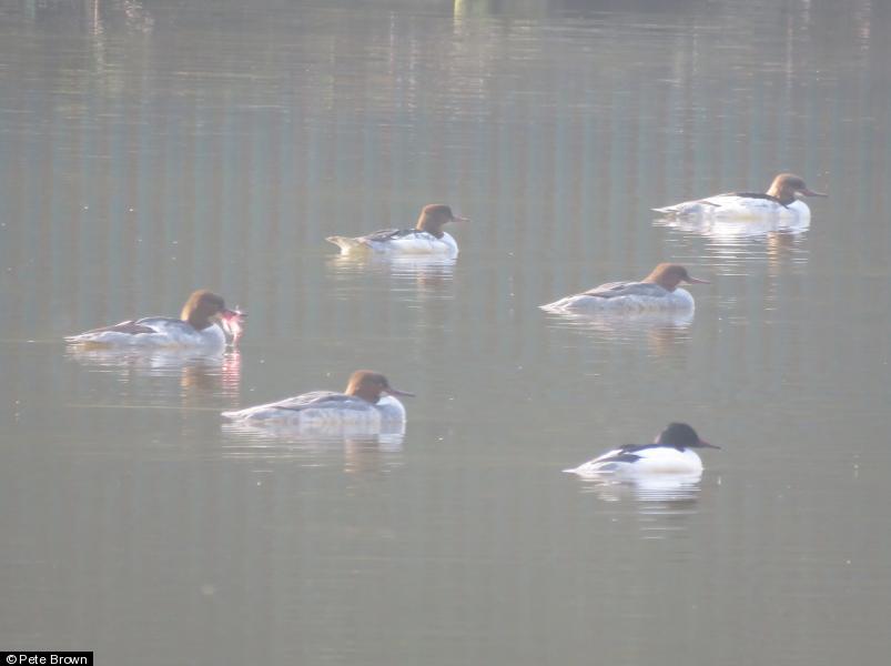 Goosander - 16 - Including the individual with beak entwined with plastic. Upper mandible now seems to be free but bird repeatedly making attempts to dislodge the rest.