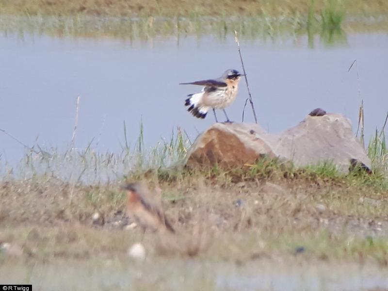Ringed Plover - 6 - Including two birds displaying. ; Little Ringed Plover - 2 ; Wheatear - 3 - All males ; Herring Gull - 24 ; Lesser Black-backed Gull - 6 ; Great Black-backed Gull - 3