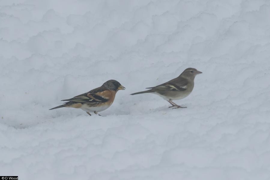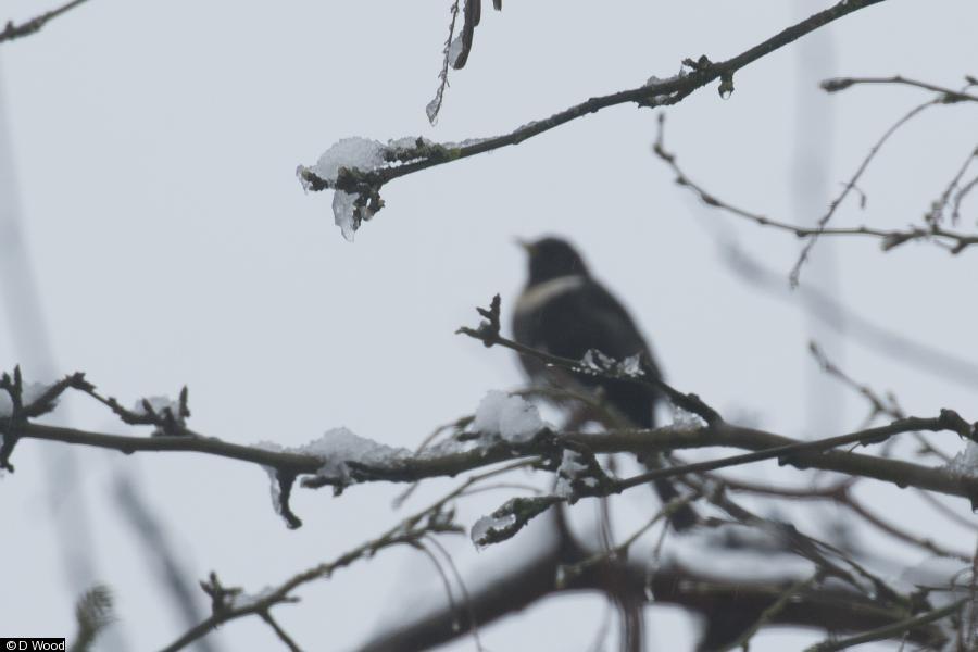 - 2 - males around feeders; record shot ; Ring Ouzel - 1 - male briefly in garden trees; record shot through branches ; Chaffinch - 12 - around feeders in snow ; Greenfinch - 4 - around feeders in snow ; Bullfinch - 3 - around feeders in snow ; Goldfinch - 7 - around feeders in snow ; Siskin - 1 - male at feeders