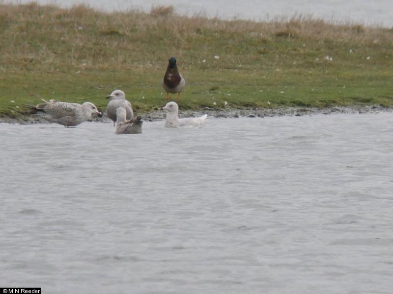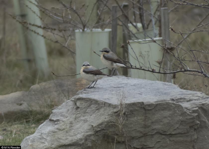 - 1 - 2nd winter ; Oystercatcher - 3 ; Little Ringed Plover - 1 ; Wheatear - 2 ; Wheatear - 2 - On rocks at northern end of Big Lake
