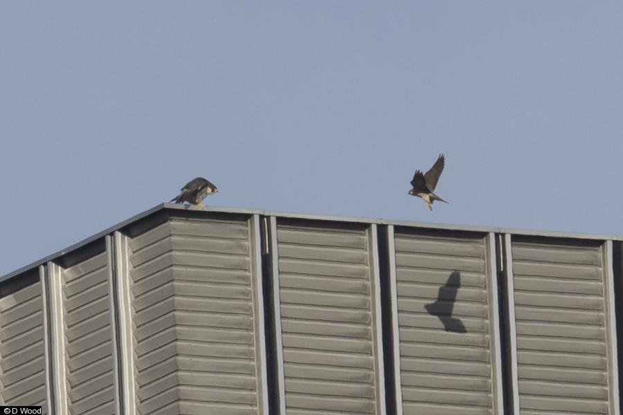 Peregrine - 1+ - fourth egg laid this afternoon ; Pied Wagtail - 1 - flycatching around St George's ; Peregrine - 3 - male on nest, female on Arts Tower mobbed by an imm male (no orange plastic ring visible). Further discussion on PG blog.