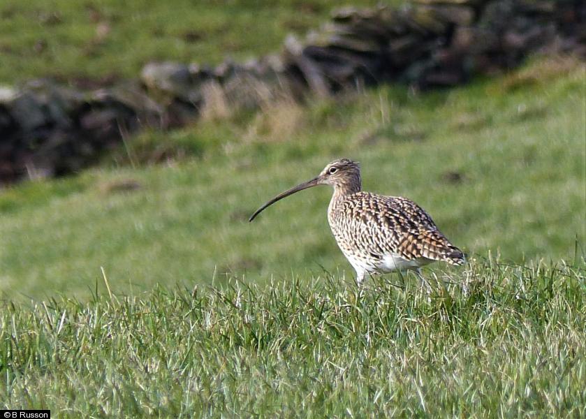 Curlew - 3 - in roadside fields ; Greylag Goose - 19 - ; Canada Geese - 8 ; Lapwing - 1+ - scattered across fields