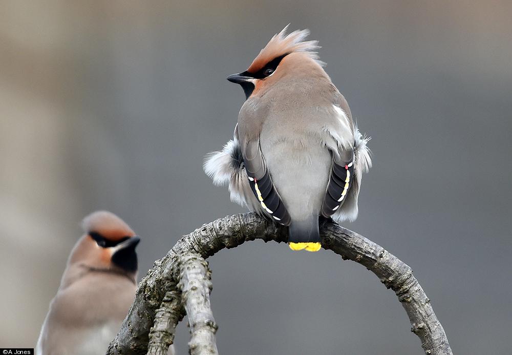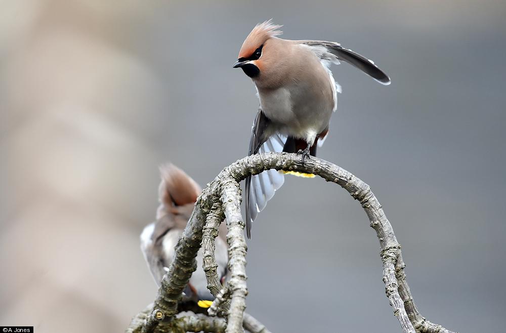 - 2 - 2 Waxwing preening, Blair Atholl Rd at 10:10. Feeding on berries in low garden shrub. ;