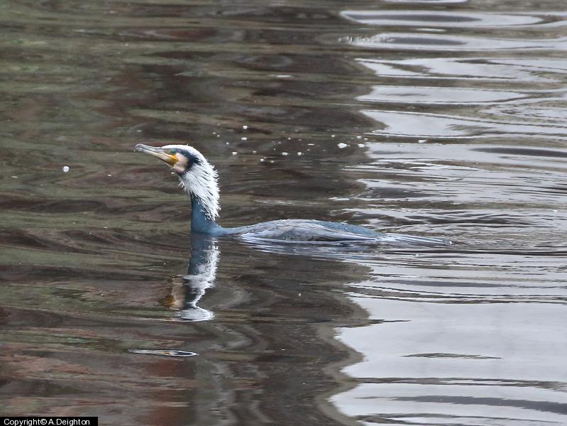 Cormorant - 1 - breeding plumaged adult on river above weir