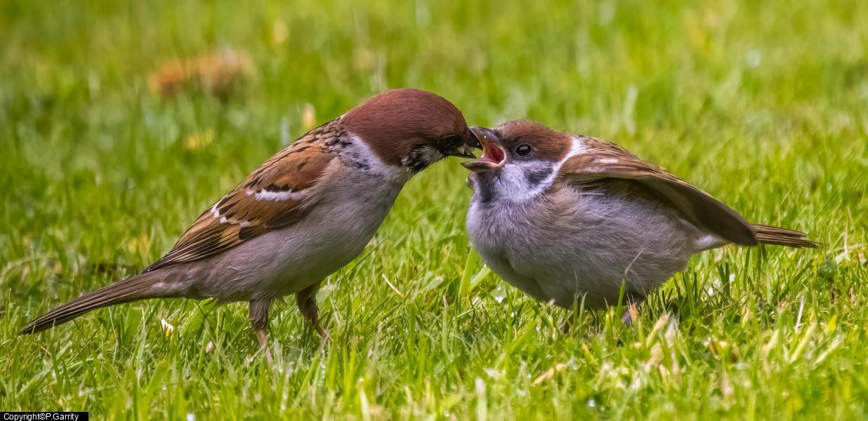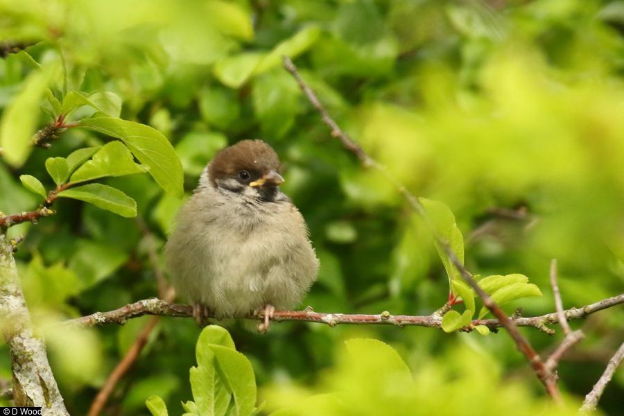 Tree Sparrow - 2+ - Pair feeding 2 fledged juvs on Lodge Moor Rd