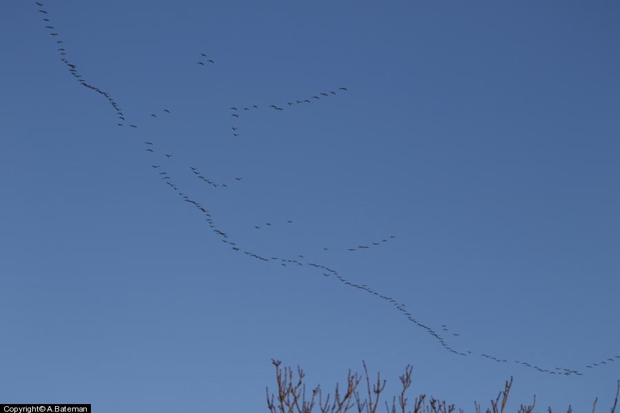 Great Crested Grebe - 5 ; Little Grebe - 4 ; Mute Swan - 7 ; Greylag Goose - 135 - +3-4 parties in from n ; Canada Goose - 80 ; Gadwall - 16 ; Shoveler - 15 - at least 6 m ; Wigeon - 17 ; 320 - 7 ; Pochard - 9 ; Tufted Duck - 95 - water fowl tight tgether in small pockets of unfrozen water ; 319 - 1 ; Water Rail - 2 ; Lapwing - 180 - on ice ; Black-headed Gull - 150+ ; Herring Gull - 6 ; Great Black-backed Gull - 1 - ad ; Robin - 17 ; Blackbird - 21