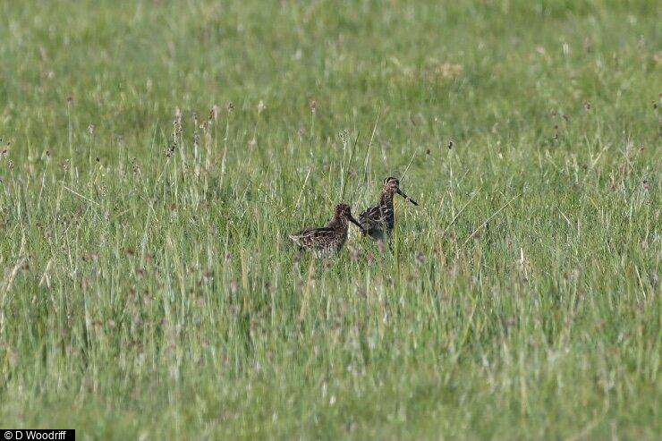 Whitethroat - 1 - Singing ; Cuckoo - 1 ; Curlew - c15 - incl. pair watching over 4 young ; Snipe - c5 - incl adult with single young ; Snipe - c5 - Adult chipping ; Lapwing - c15 - incl 2 young ; Reed Bunting - 1 - Singing ; Swallow - 3