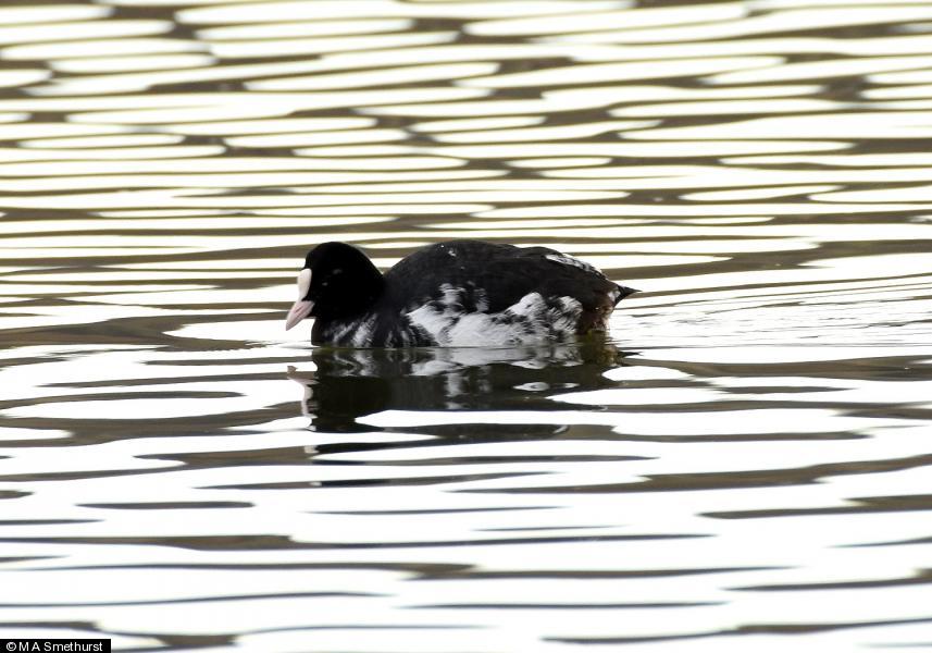 - 1 - imm. male ; Coot - 1 - part leucistic bid in NW corner ; Little Grebe - 1 - In river near weir ; Goosander - 2 - m & f ; Kingfisher - 1 - on fence between lakes