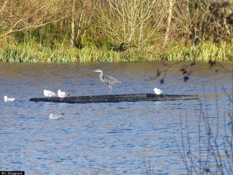 Herring Gull - 1 - First-winter on lake with BHGs; first time the species has been down on the water here. ; Moorhen - 4 ; Black-headed Gull - 40
