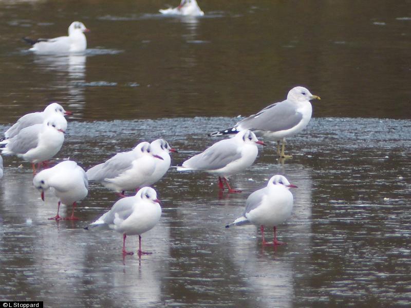 Common Gull - 2 - Still on frozen lake ; Kingfisher - 1 - Showing very well on lake. ; Black-headed Gull - 40+ - On lake