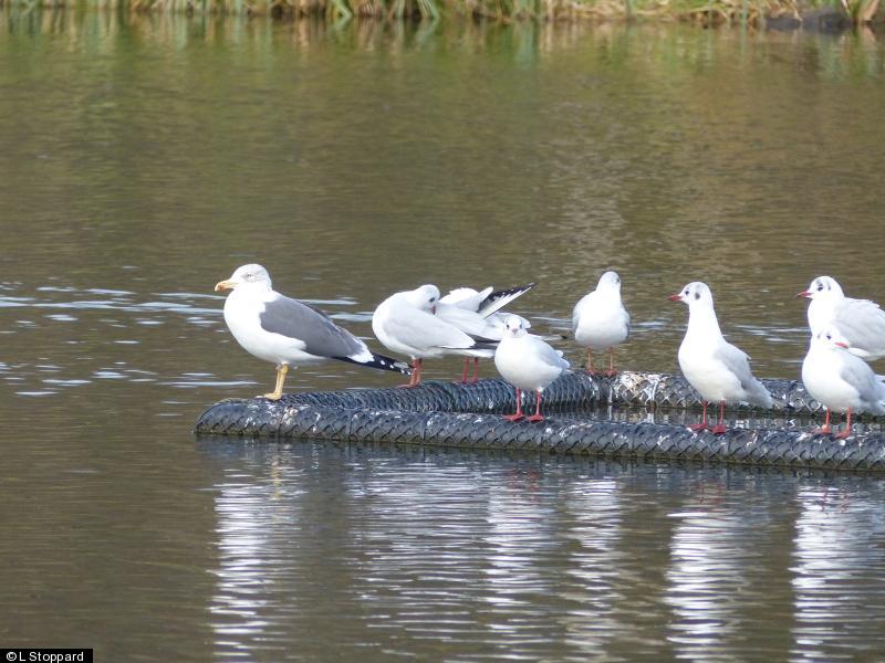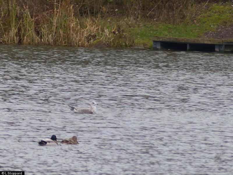 Kingfisher - 1 - Fishing ; Common Gull - 1 - Flew in at 14:21 for 1min, then left. ; Black-headed Gull - 50+ ; Lesser Black-backed Gull - 1 ; Bullfinch - 1 - Male ; Jay - 1 ; Grey Heron - 1 - Flew down river ; Kestrel - 1 - Over lake