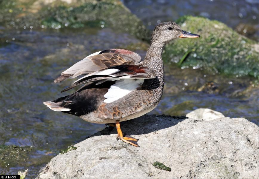 Sedge Warbler - 2 ; Oystercatcher - 4 ; Starling - 6 ; Redshank - 5 - Including 2 chicks and one adult with one leg. ; Mute Swan - 15+ ; Gadwall - 10+
