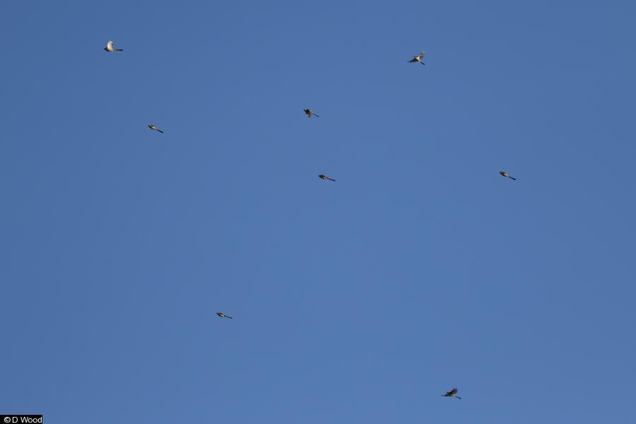 - 1 - circled low,calling prob.left n1045 ; Gadwall - 8 - 5m3f ; Pochard - 8 - 6m2f ; Goldeneye - 1 - f ; Tufted Duck - 62 ; Water Rail - 2 ; Coot - 80+ ; Moorhen - 10+ ; Lapwing - 192+ - inc 180+ in fields ; Black-headed Gull - 180+ ; Common Gull - 1 ; Herring Gull - 3 - 2ad, 1-1st w ; Lesser Black-backed Gull - 1 - ad ; Skylark - 9 - 3 south, 6 in stubble field ; Grey Wagtail - 1 ; Blackbird - 46 ; Fieldfare - 12 - past n ; Goldcrest - 4 ; Bullfinch - 9 ; Kestrel - 1