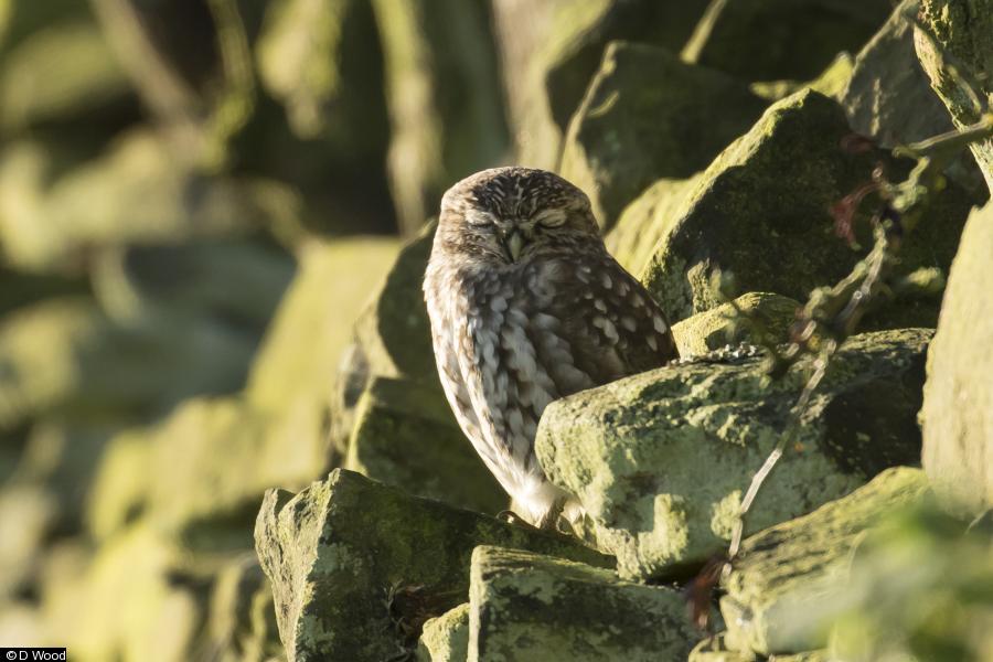 Little Owl - 1 - dozing in the sun ; Little Owl - 1 - another photo ; Canada Goose - 23 - grazing in fields