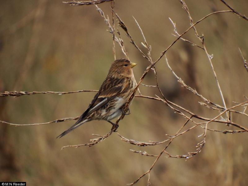 - 2 ; Reed Bunting - 2 ; Yellowhammer - 2 ; Goldfinch - 8 ; Blue Tit - 4 ; Great Tit - 4 ; Coal Tit - 2 ; Dunnock - 1 ; Robin - 2 ; Blackbird - 3 ; Great Spotted Woodpecker - 2 ; Pheasant - 7 ; Kestrel - 1 ; Raven - 1