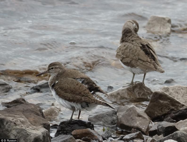 Common Sandpiper - 2 - Pair bathing and preening roadside