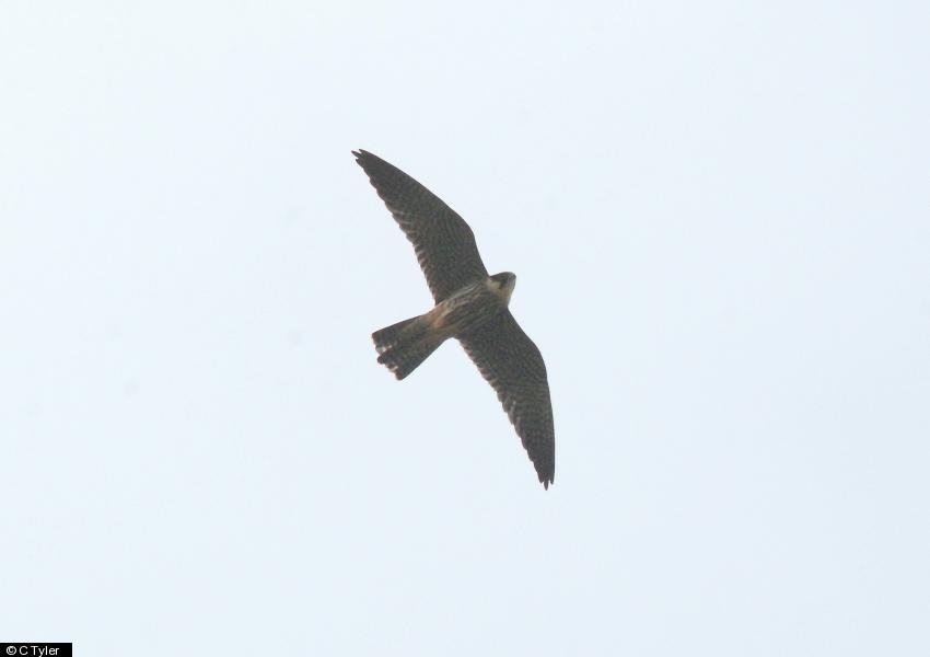 Tawny Owl - 1 ; Hobby - 1 - Briefly over main Res scattering Swallows and Martins. ; Wheatear - 2 - feeding on ploughed field. ; Kestrel - 1 ; 319 - 4 ; Sparrowhawk - 1 - Large Female hunting along hedgerow. ; Blackcap - 1 ; Stock Dove - 4 ; Mallard - 7 ; Meadow Pipit - 5+ - Singles over calling. ; House Martin - c50 - Large numbers feeding over adjacent fields and paddocks with Swallows. ; Swallow - c30 ; Goldfinch - 10+ - feeding on Thistles on Dam wall ; Grey Wagtail - 1 ; Green Woodpecker - 1 - Calling ; Great Spotted Woodpecker - 1
