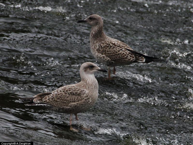 - 1 - adult ; Lesser Black-backed Gull - 2+ - including 2 adult intermedius ; Herring Gull - 4 - juveniles ; Swift - 10+ - overhead ; Herring Gull - 7+ - inc 4 juvs. Comparison shot of juv Herring Gull (left) and juv Lesser Black-backed Gull (right)