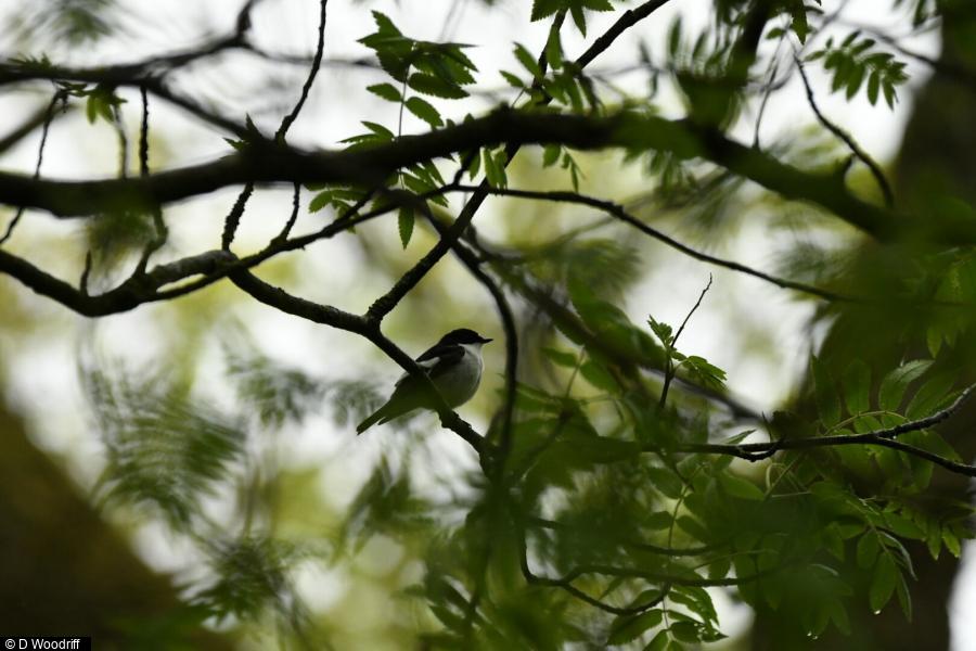 - 3 - singing males ; Blackcap - 4 - singing males ; Chiffchaff - 4 - singing males ; Willow Warbler - 5 - singing ; Goldcrest - 7 - singing ; Mistle Thrush - 1 - singing ; Cuckoo - 1 - singing ; Pied Flycatcher - 0 - no sign of any in full stretch of the valley ; Grey Wagtail - 2 - Pair gathering food W of bridge below A57 end ; Siskin - 2 - calling in different areas