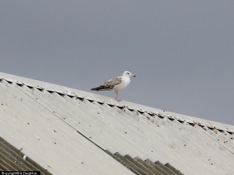 - 1 - 3s/4cy bird again on roof at 13:30 ; Black-headed Gull - 30+ - first juv today.
