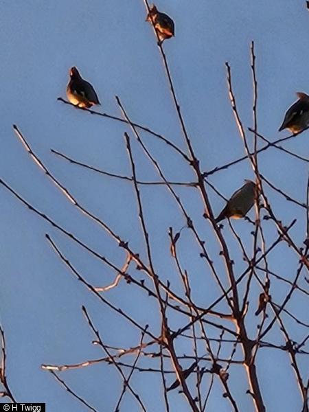 - 4+ - in holly tree, in a mixed flock with Blackbirds ; Blackbird - 3+ ; Blue Tit - 3+ ; Great Tit - 1 ; Goldfinch - 3 ; Black-headed Gull - 35 ; Herring Gull - 1 ; Mallard - 14 ; Coot - 2 ; Moorhen - 3 ; Woodpigeon - 3 - juvenile ; Cormorant - 1 - immature bird on pond