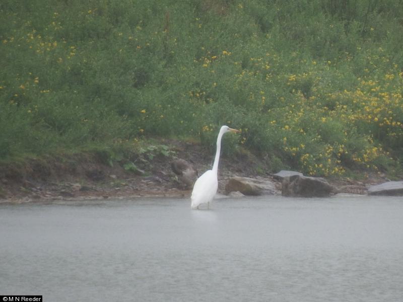 Oystercatcher - 1 - over calling @ 0615hrs (heard only); appeared to leave W ; Great Spotted Woodpecker - 1 - calling ; Mallard - 23+ - 18m; 5f + 16juvs (2 broods) ; Kingfisher - 1 ; Great Crested Grebe - 6 - no signs of breeding ; Coot - 7+ - + 7 juvs (2broods) ; Tufted Duck - 7 - 5m; 2f ; Stock Dove - 1 - singing male ; Wren - breeding confirmed - family party ; Reed Warbler - 1 - singing from typha on N shore ; Chiffchaff - 1 - singing male ; Moorhen - 2 ; Greylag Goose - 30 - all adults ; Mute Swan - 1pr - + nest; cob very aggressive ; Black-headed Gull - c15 ; Canada Goose - 5 ; Common Buzzard - 4 - up together, 0715-0720hrs; drifted W ; Swift - c20 - feeding over