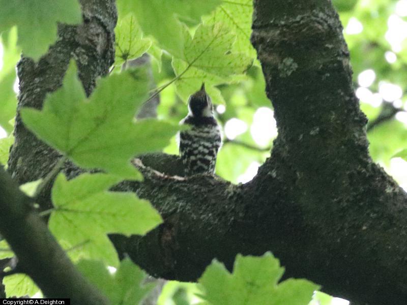 - 3 - ad male and 2 recently fledged calling juvs, by Charles Ashmore car park. Juvs attacked twice by GSW, escaping minus a clump of feathers.