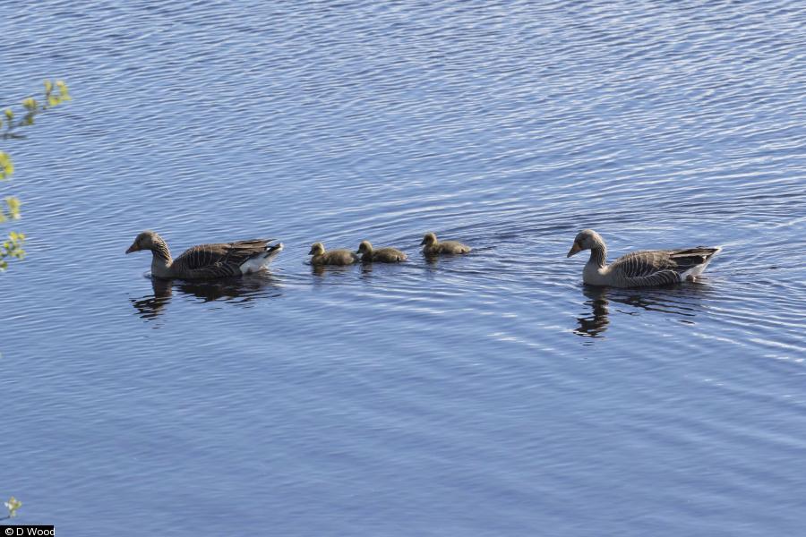 Great Crested Grebe - 8 - prs + 2 well grown juvs ; 321 - 4 ; Mute Swan - 1 ; Canada Goose - 14 ; Greylag Goose - 35 - + 14 juvs ; Tufted Duck - 14 ; Sparrowhawk - 2 ; 319 - 4 ; Kestrel - 2 ; Red-legged Partridge - 2 ; Lapwing - 4 - Prs ; Lesser Black-backed Gull - 2 - S ; Stock Dove - 6 ; Kingfisher - 2 ; Tawny Owl - 1 - calling @ 05.45 ; Swift - 40 ; Skylark - 4 - Singing ; Swallow - 40 ; House Martin - 5 ; Sand Martin - 1 ; Pied Wagtail - 1 - pr ; Grey Wagtail - 1 - pr ; Garden Warbler - 1 - singing ; Blackcap - 5 - Singing ; Lesser Whitethroat - 1 - singing ; Whitethroat - 3 - Singing ; Chiffchaff - 4 - Singing ; Spotted Flycatcher - 1 - fly-catching from dead tree by Morley Pond ; Nuthatch - 2 ; Raven - 1 - W @ 06.10 ; Jay - 1 ; Bullfinch - 2 ; Reed Bunting - 2 - Singing ; Coal Tit - 1